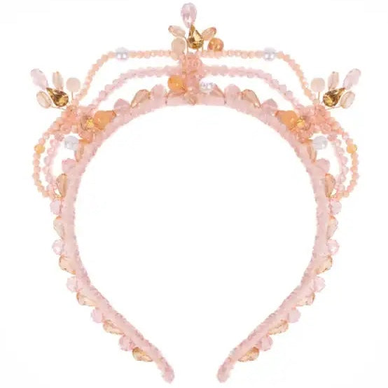 Fit for a fairy tale, the Blushing Crystals Beaded Tiara brings soft sparkle and royal charm to any look. This enchanting tiara features a band lined with delicate blush-shaded crystals, topped with graceful arched pink beads that add height and elegance. Scattered throughout the design are shimmering gold and pink gemstones paired with dainty pearl accents, giving this tiara a magical glow from every angle.