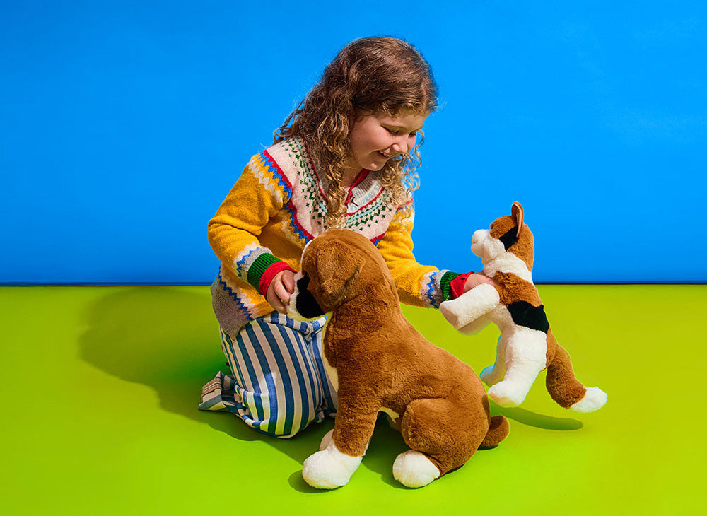 Welcome to the adventures of Patches and Chance! Patches the Calico Cat loves to explore the world with his BFF Chance the Boxer (sold separately). Patches is always the first to leap into action, eager to discover new places and make new friends. Sitting at 10" tall, he's covered in a soft patchwork of brown, white and black fur. His little pink nose, bright, shiny eyes, and fluffy tail make Patches lovable from the first sight, and his soft and snuggly body make him perfect for a comforting squeeze after a day full of adventures.