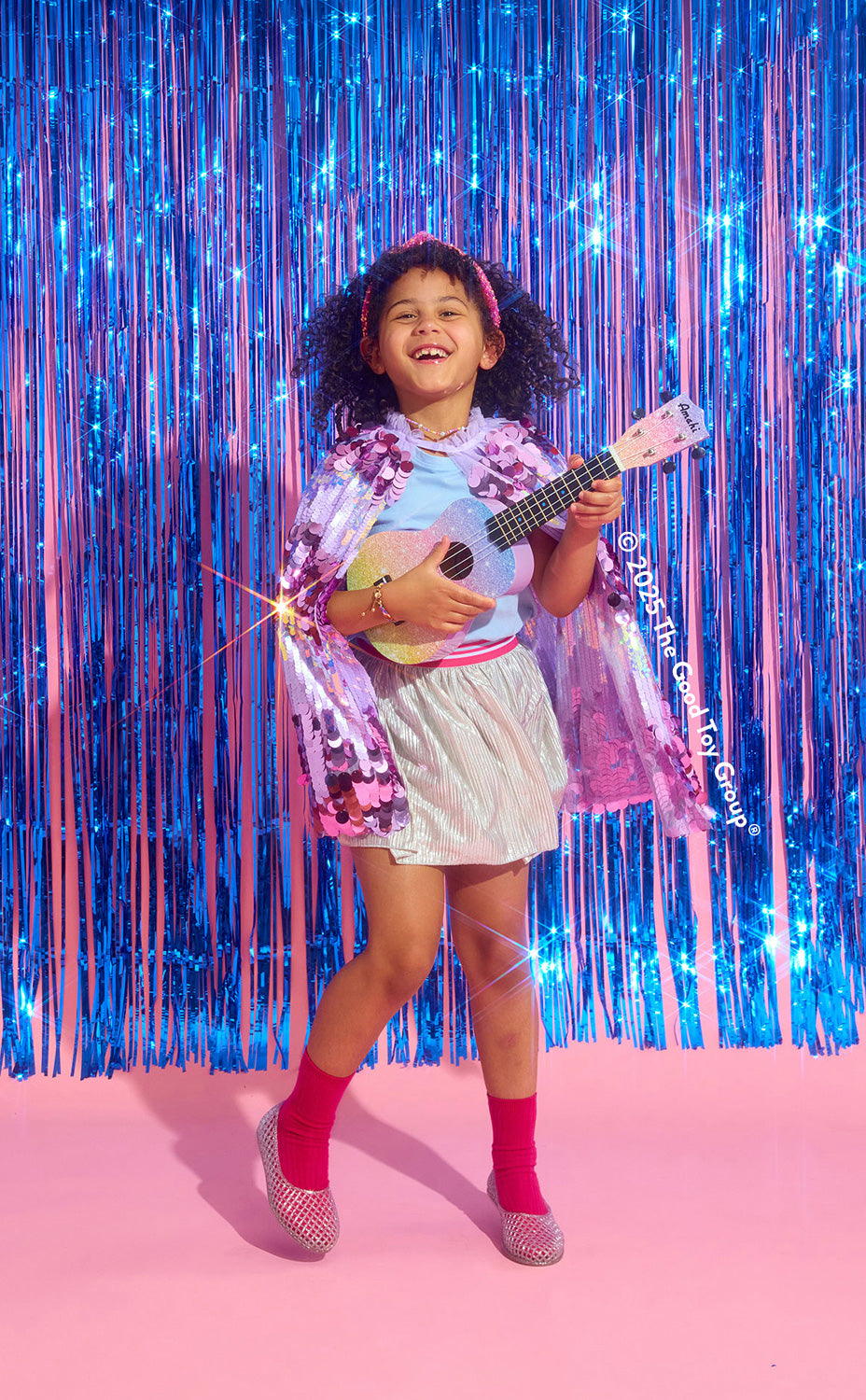 Dazzling, delightful, bold: a sequined statement piece designed to spark joy and encourage creative expression through fashion. Perfect for kids who love to stand out, this eye-catching cape features alternating stripes of dazzling purple and lilac sequins that catch the light with every movement. The comfortable tulle collar and adjustable velcro neck closure allows for safe swirling, twirling adventures. We love that it's machine washable!