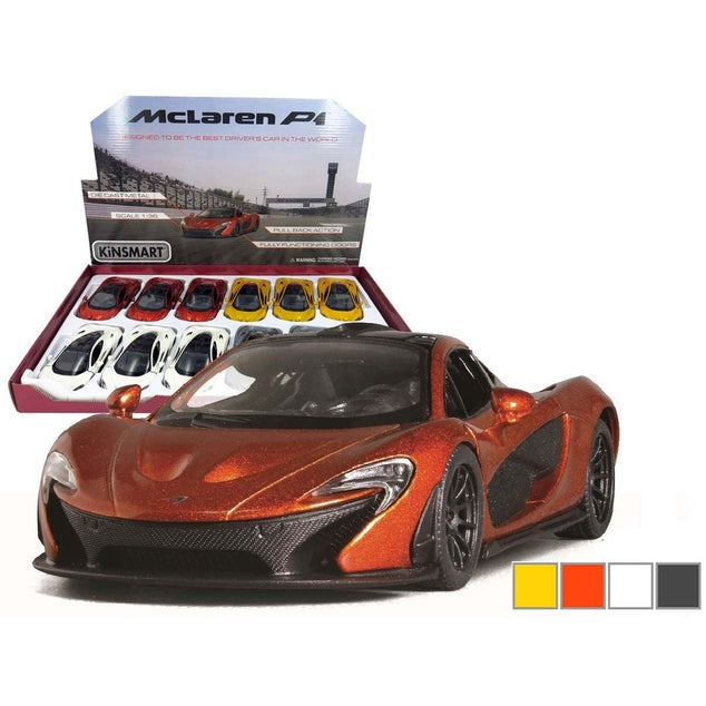 Classic Mclaren sports car collectiblePull back motor action and opening doors. Made of metal and plastic. Item 5" L., 1:36 Scale replica.