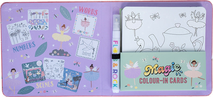No more worries over felt tip marks on the walls with these color changing water cards! This sweet Enchanted pack contains 10 fun reusable cards and a water pen. Simply fill up the pen with water and color away to see the magic happen! Each card has words, numbers or scenes to color in. Nice and compact and perfect for travel and taking out and about.