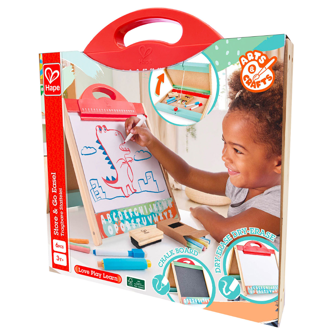 Help children develop their creativity (and get their learning on as they head back to school later this summer) with a 3-in-1 easel. One side features a chalkboard and numbers 1-9. The other side has a magnetic whiteboard, a large paper clip with ruler, and the letters of the alphabet. Measuring 13" x 13.8" x 1.8", this tabletop easel can be easily brought along on adventures and even has a sturdy carrying handle! Includes 1 chalkboard eraser, 2 magnetic whiteboard markers with eraser tops, 12 colored chalks, and a chalk holder. We love that it closes and locks for easy storage, and that all the accessories fit inside the folded easel.