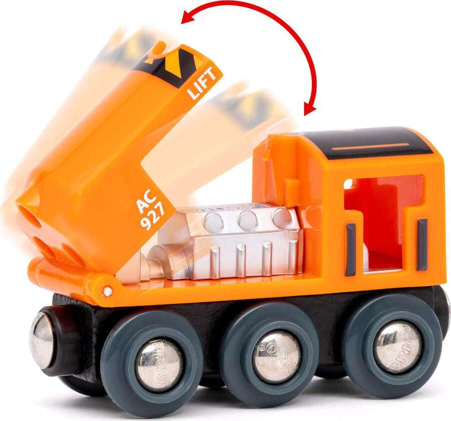 Gear up for your first BRIO World adventure with the 36028 Starter Lift & Load Set. This 14-piece railway set features classic BRIO play with focus on lifting and loading cargo between trains, cranes and trucks. Place the wooden cargo load on the back of the orange cargo train and take a lap around the iconic BRIO wooden tracks. Then use the magnet on the low level crane to pick up the cargo, swing it around to be loaded onto the blue truck and off you go.