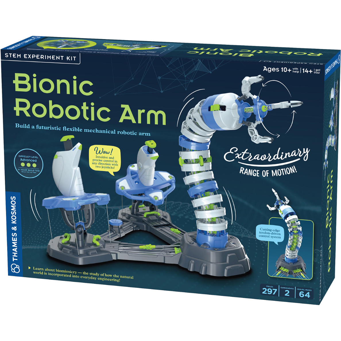 Future engineers feel what it's like to build and control a state-of-the-art remote operating robot! They'll enjoy the focused work of building this 297-piece bionic robotic arm while learning about mechanical assembly. Once built, kids control the robotic arm using intuitive joysticks that pull on nylon cables, enabling precise 360 degree motion and flexible grabbing. Change the claw for the eel head for extra fun! Recommended for ages 10 and up with help, or 14 and up for independent play.