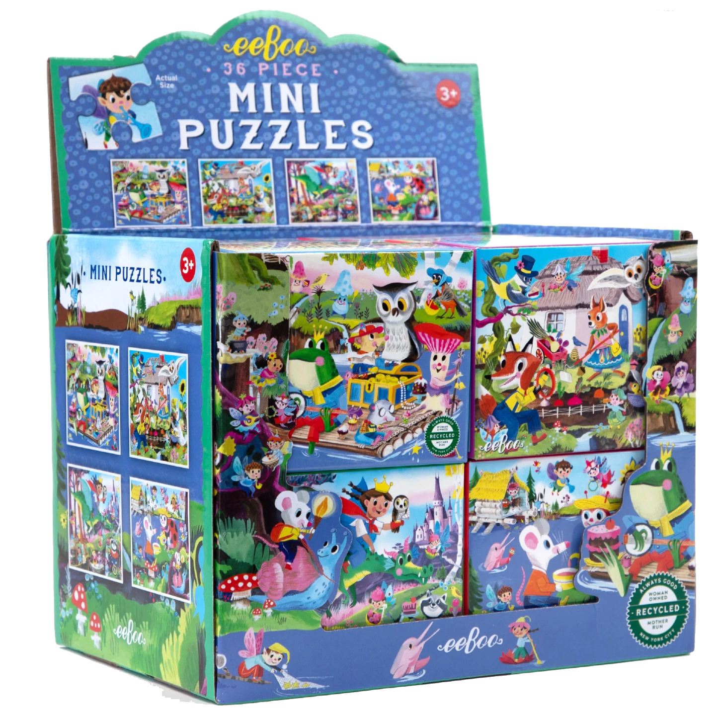 An assortment of mini puzzles featuring the whimsical fairytale art of Linda Bleck.