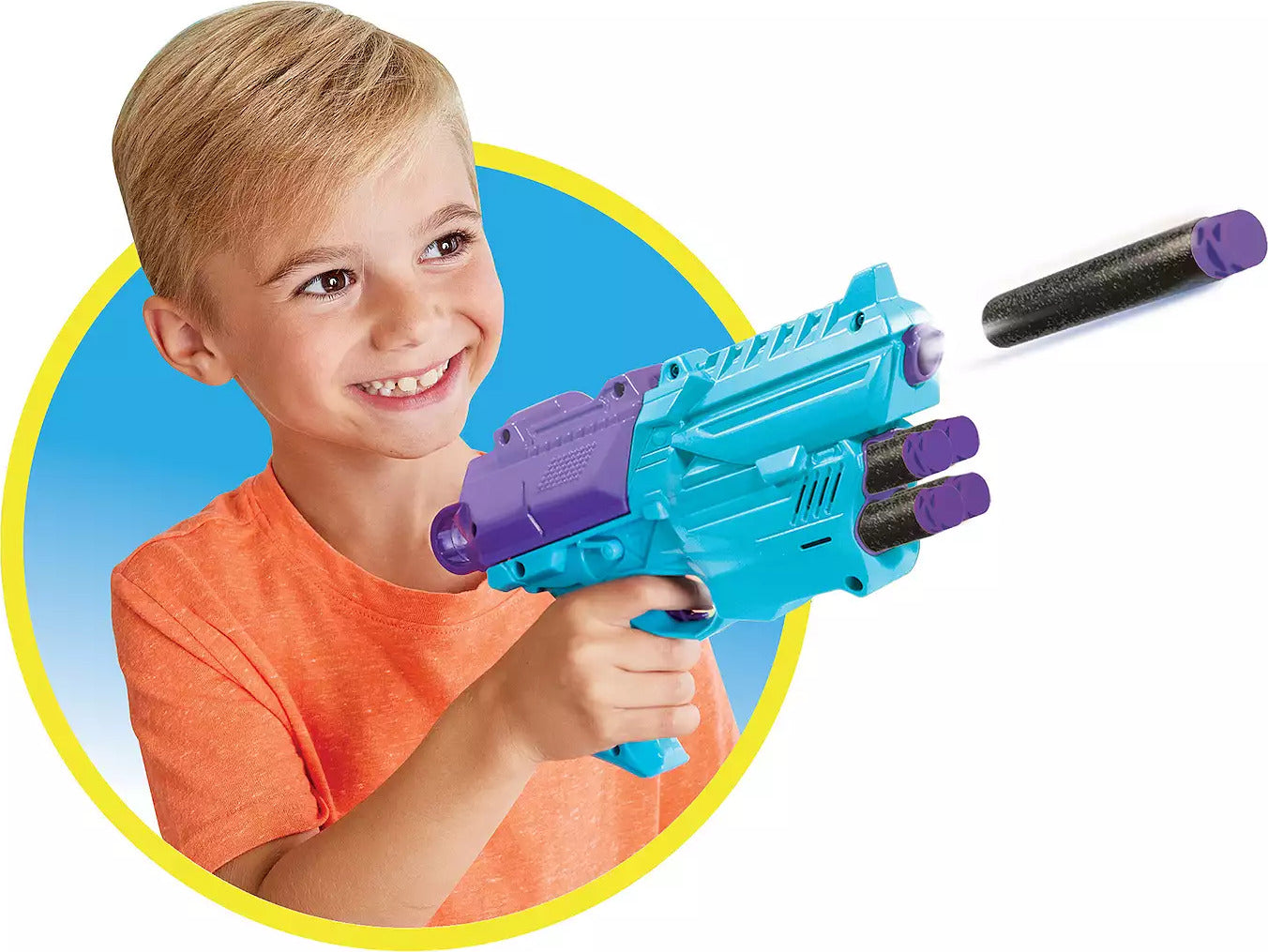 Load the soft foam darts into the blaster and try to shoot down the balls. There are multiple ways to play and challenge your family & friends. 5 Shot Challenge - players take turns and see how many balls they can knock down with 5 shots.