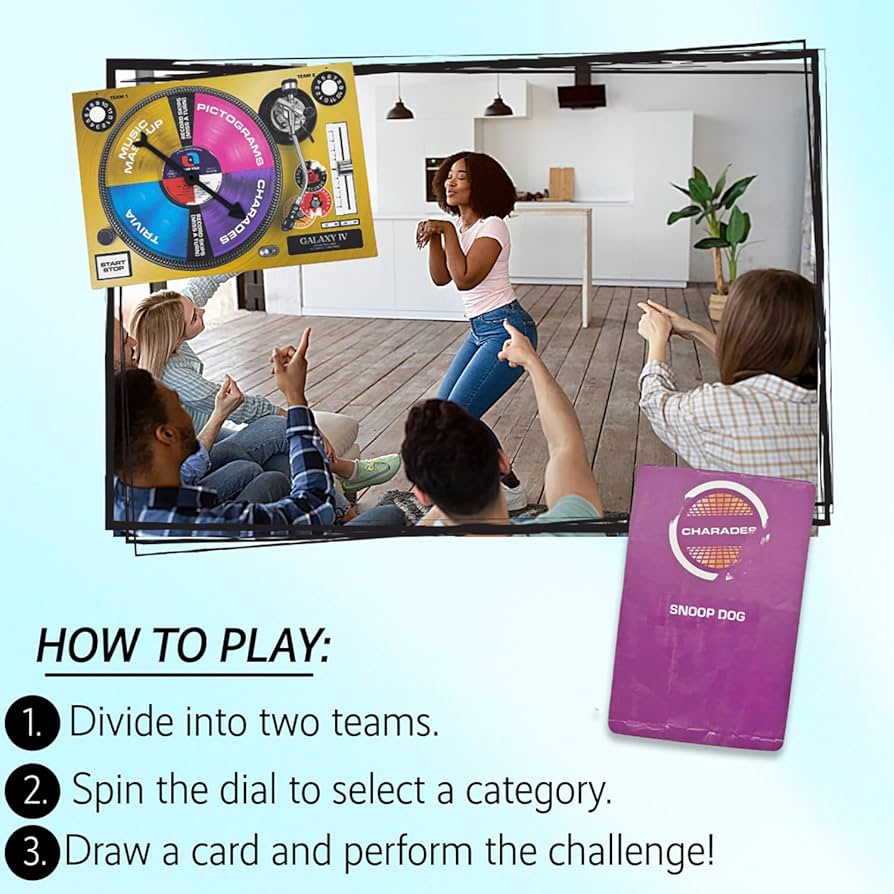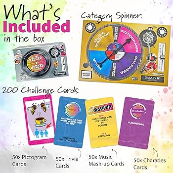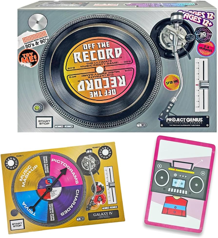Get ready to transport your party back in time with the ultimate game for fans of 80s and 90s music! Dive into the electrifying world of big-hair bands, moody grunge anthems, and lightning-fast rap beats. It’s time to celebrate the revolutionary sounds that defined an era! Includes: Instruction booklet, Category Spinner, 200 cards featuring: Trivia, Charades Prompts, Music Mashup Challenges, & Pictograms.