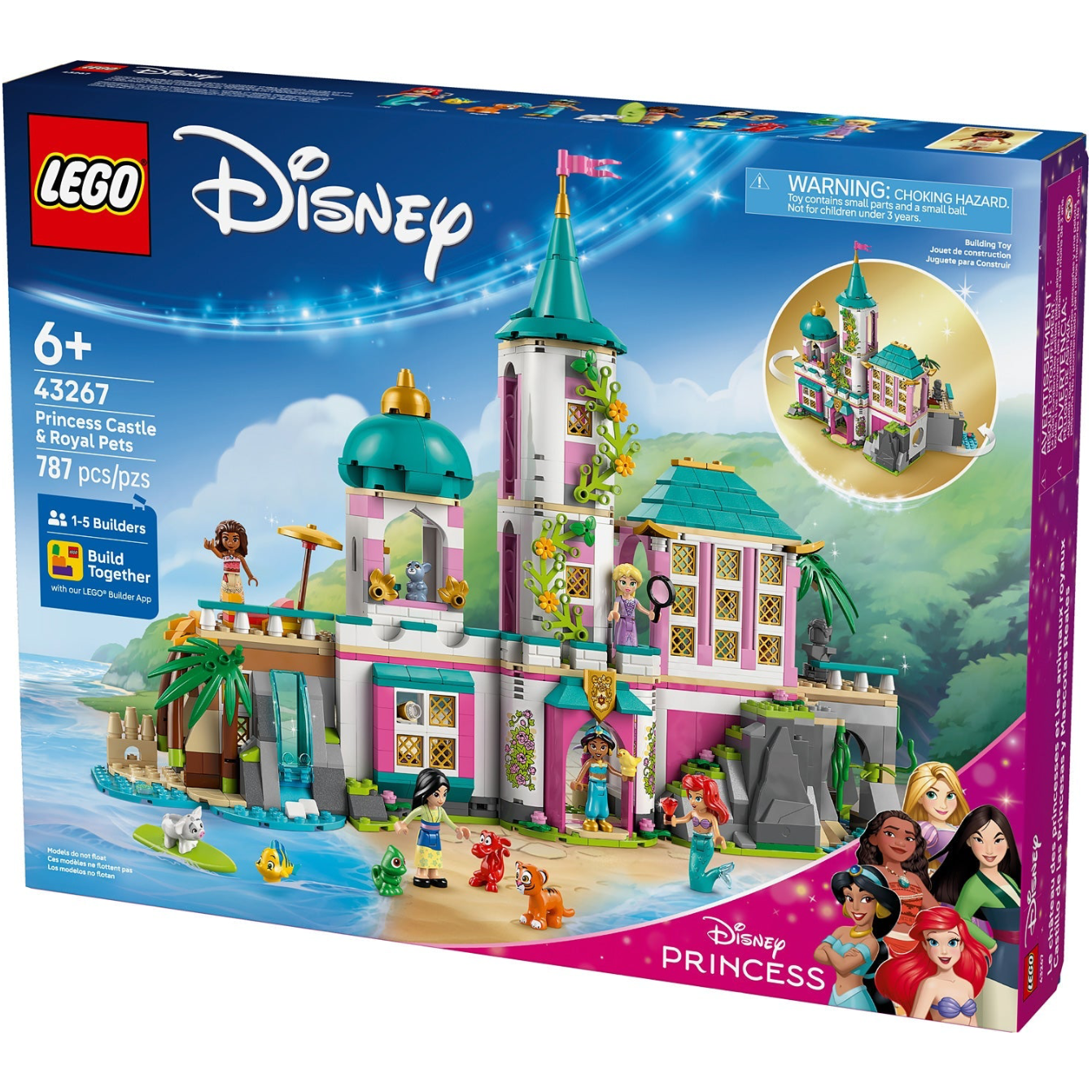 Enter a whole new world of Disney fandom with this huge Princess Castle build! It's like something out of a dream: fairytale storytelling awaits with this 787-piece set with tons of exciting details. Join Ariel, Rapunzel, Mulan, Jasmine, Moana, Flounder, Pascal, Rajah, Pua and Mushu as they follow the treasure map, explore the hidden cave and opening waterfall, decorate each character's room, and care for their animal friends! Open the 3-level castle for play, and fold it for display.