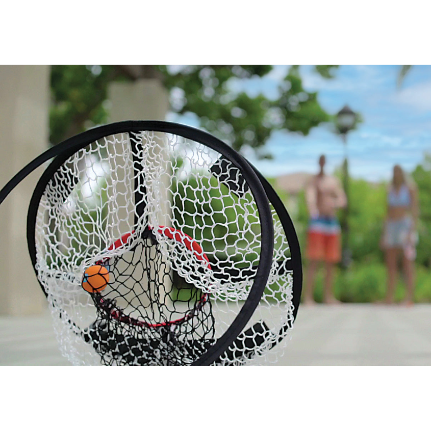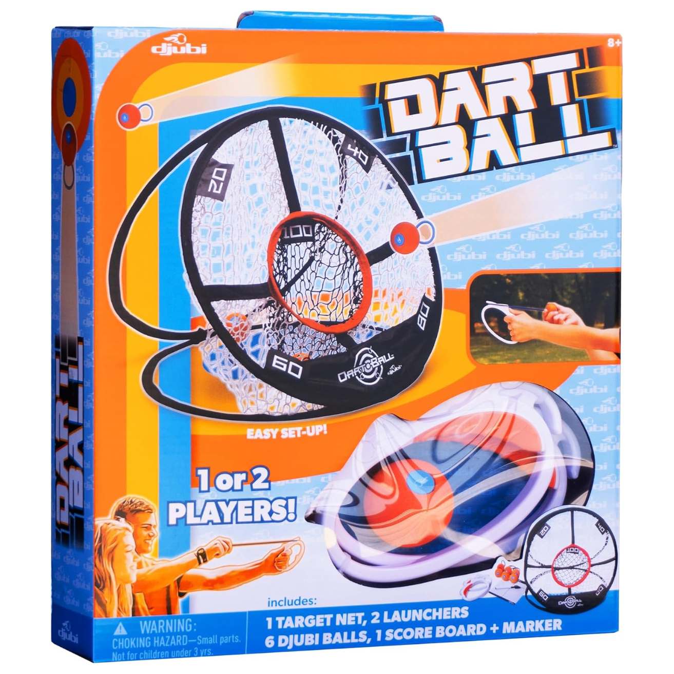 Take aim for screen-free fun! Ages 8+ build their accuracy skills by hooking a Djubi ball onto a handheld launcher, aiming at the pop-up netted target, and launching to score from 20-100 points! Play outdoors or indoors (just aim away from Grandma's prized possessions). Comes with 6 Djubi balls, 2 launchers, target, and dry erase score chart with marker. For 1-2 players.