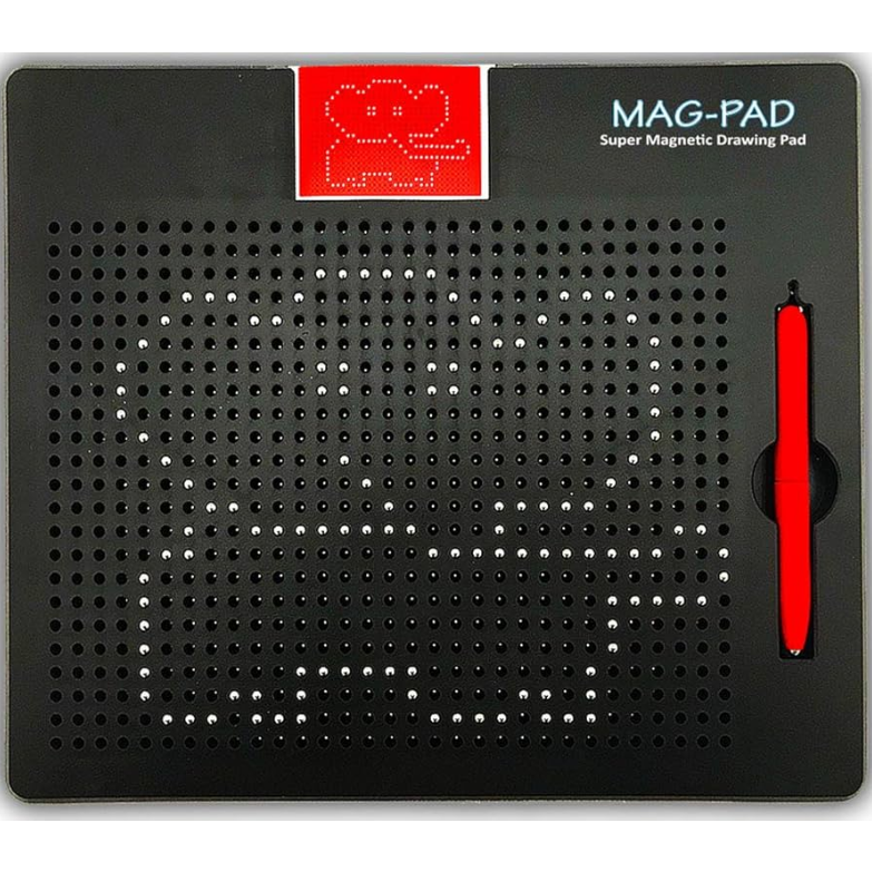 Explore creativity while enjoying engaging, sensory-reinforced play! Perfect for screen-free travel entertainment, kiddos use the attached magnetic stylus to "draw" on this slim drawing pad, pulling beads to the 12" x 10" surface with a satisfying click. Using their imaginations or following the letter and picture card examples, ages 3+ draw, design and create. "Erasing" is half the fun! Use a finger or the stylus to push the beads back down, and start over! Built to last for years; pass it down from kid to kid!