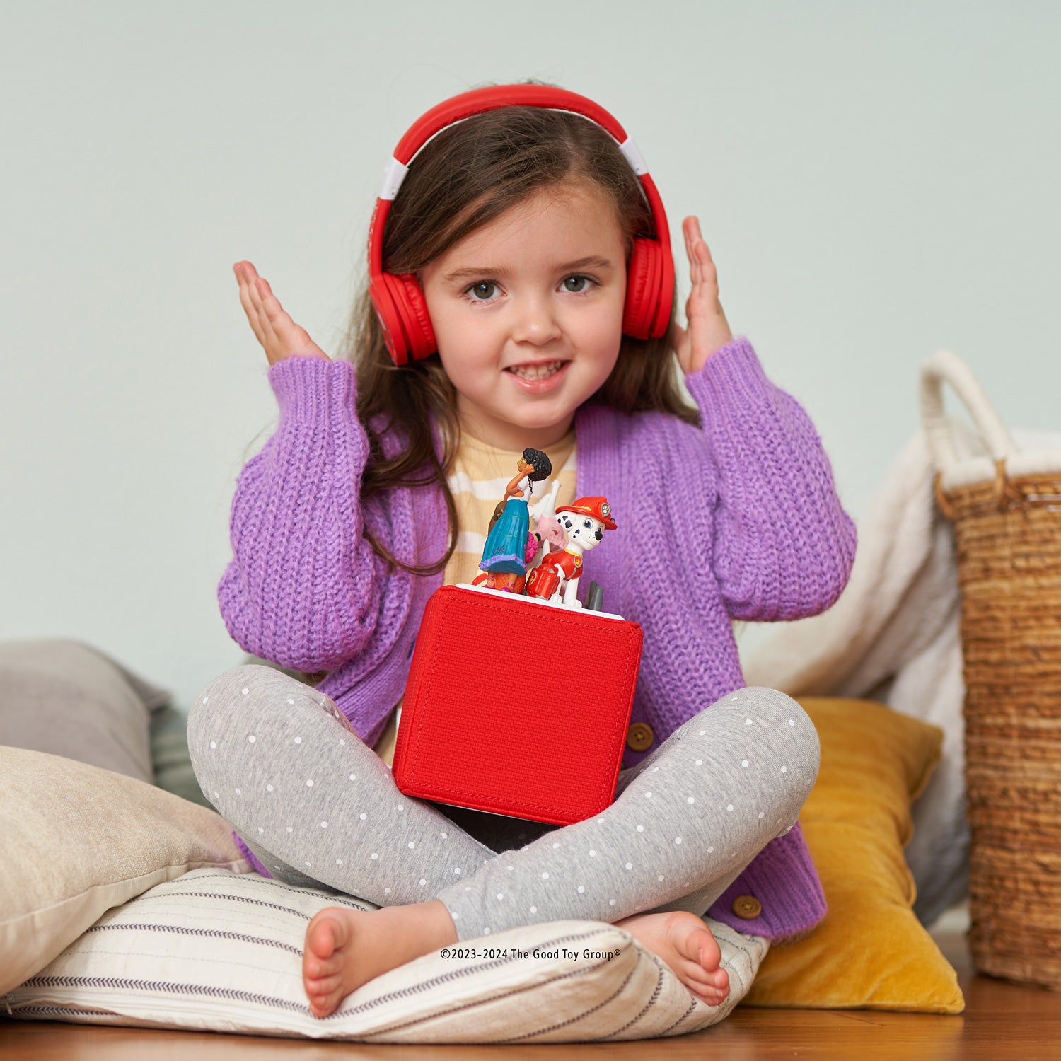 This kid-friendly, screen-free, portable, audio system brings story time adventures near and far. Durable, safe, ad-free (yay!) and totally engaging! Pair it with any Tonies Character (sold separately) by magnetically attaching it to the top of the Toniebox. The Toniebox instantly recognizes the character standing on top and unlocks the audio files. To get started, all you need is a WiFi connection and a Toniecloud account. Download the free Tonie-App on the App Store or Google Play. Wi-Fi connection is required for initial set-up. This set includes a Playtime Puppy Tonie features a select compilation of the most popular children's songs, a charging station to power your Toniebox battery (up to 7 hours of battery life) and an instruction manual. A screen-free, digital listening experience for growing minds!
