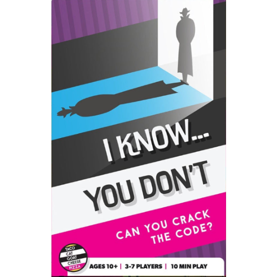 New from the creators of Taco Cat Goat Cheese Pizza: can you crack the code? Take turns being the Rule Keeper who chooses the rule that everyone else must try to figure out, like "cards cannot be blue" or "cards must be tacos." Each card played is a clue, giving all players the chance to detect what the pattern might be. If you can crack the code, use it to discard and win! Five levels of difficulty and a quick 10 minute gameplay make this a go-to choice for group entertainment anywhere, anytime. For 3-7 players.