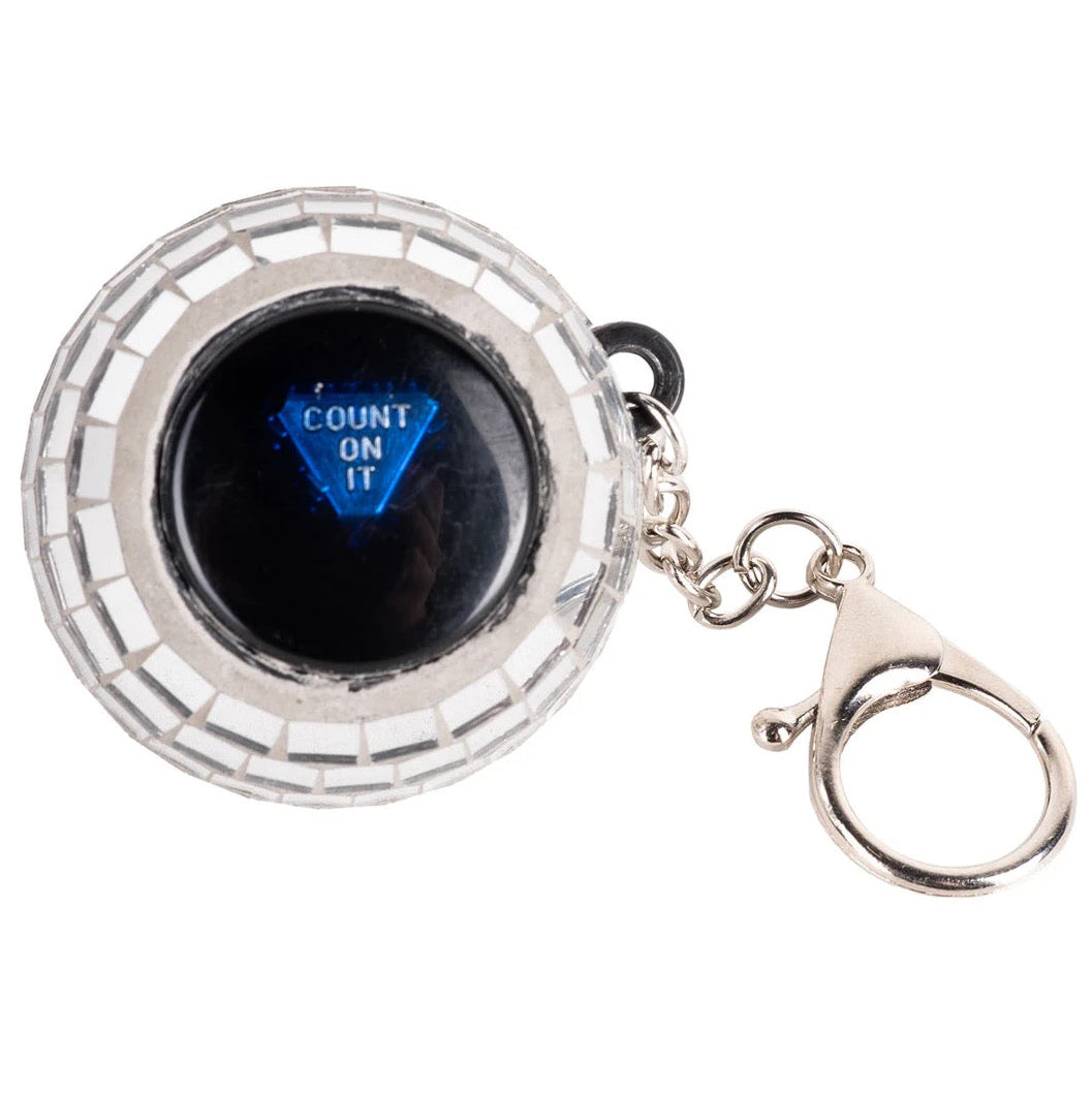 Need some help making quick decisions on the go? Clip this glittery keychain to your favorite bag for answers anywhere, anytime. Ask your question, shake up this pocket-sized disco ball, and reveal one of 20 entertaining answers. Dazzling responses range from "count on it" to "no doubt". Fun, functional, and fabulously retro.