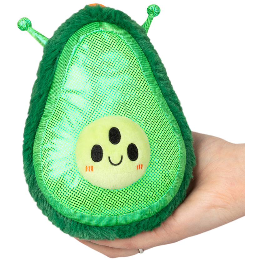 Space-alien avocado? Oh - that's just its alter ego! Give it a hug and feel how squishy it is, with its special soft fur and slightly weighted base. 5 squishy inches to bring on smiles, whenever you need a hug. This is one of 5 in the first series - collect them all!