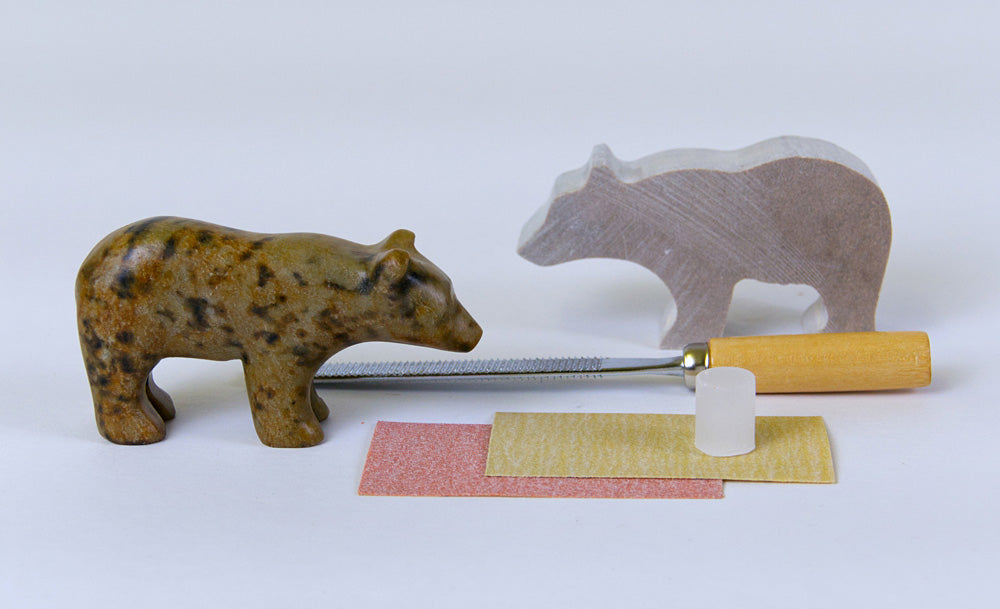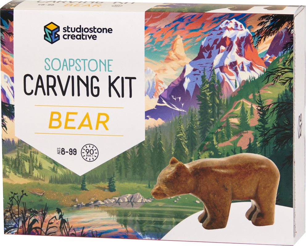 Discover the fun and relaxation of carving! Starting with a soapstone base shape, you'll follow awesome instructions to carve, sand and polish a masterpiece. Kid safe and eco-friendly, with a wet carving technique that eliminates dust, it's creative fun and hands-on learning for the whole family. Kit includes everything you need to make a beautiful bear sculpture.