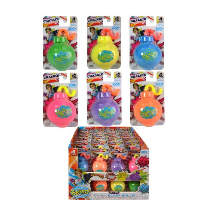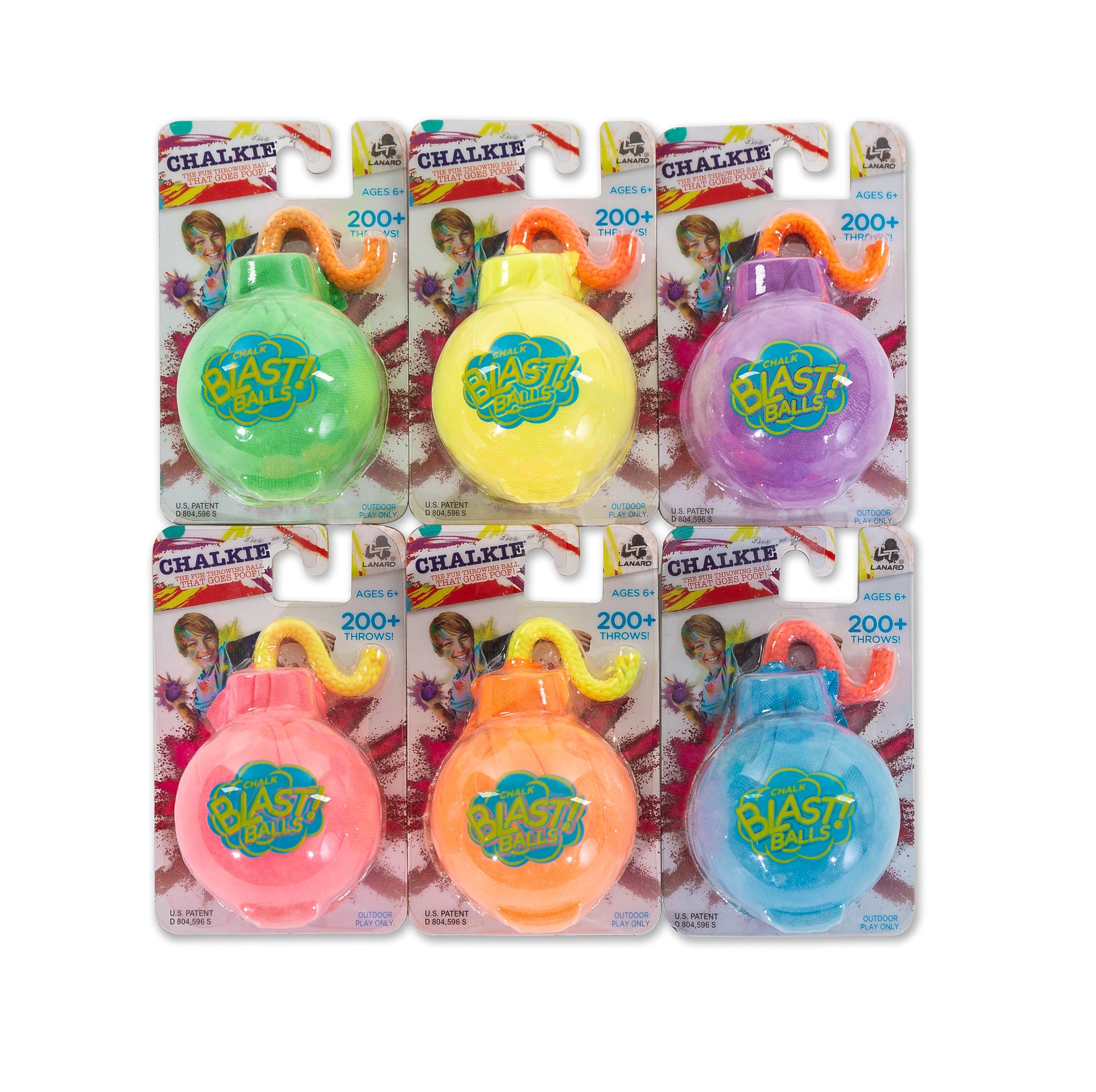 Add a burst of creative fun to the playground with this innovative Chalk Blast Ball fun pack! The set includes 6 bright and colorful balls with soft fabric coating, 200+ throws each, and crunchy, colorful chalk powder inside. Create amazing outdoor art with every toss and get ready to challenge your friends to an epic chalk showdown. Get ready to blast off with Chalkies!
