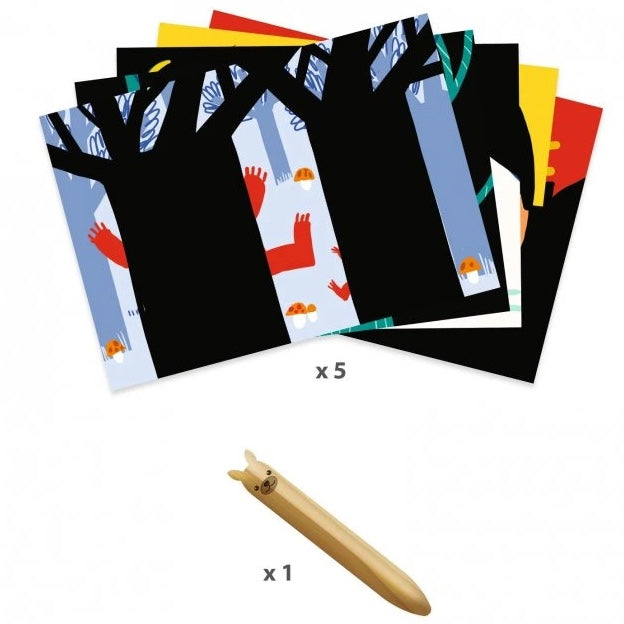 - 5 large cards and 1 large double-sided wooden stylus, suitable for young children.