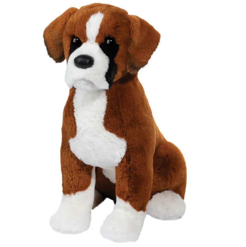 Welcome to the adventures of Chance and Patches! Chance the Boxer loves to explore the world with his BFF Patches the Calico Cat (sold separately). Chance has boundless energy, always sniffing out new ways to play and new stories to imagine. Sitting at 19" tall, his beautiful smooth plush coat is a mix of warm chestnut brown, white and black, and he's sturdily built in order to stand the test of time. Chance's expressive eyes and signature wrinkles and jowls give him an adorably grumpy look – but you can tell he's really just excited for playtime!