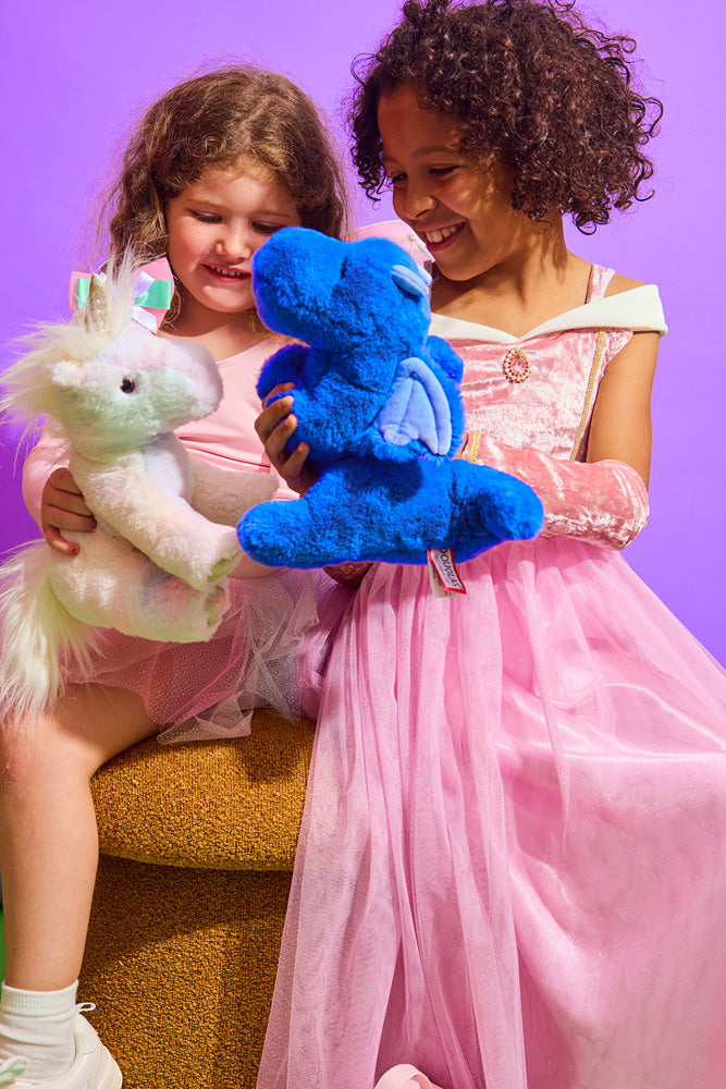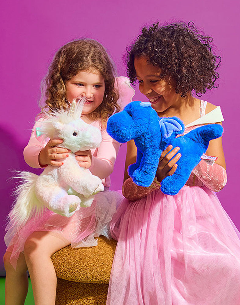 Imaginations take flight with a blue-eyed, little-winged blue dragon plushie! Indie sits at 9" tall and is the perfect size for magical adventures and enchanting cuddles. You won't believe how incredibly soft he is! Snuggle up for sweet dreams of castles in the clouds. Other plush friends sold separately.
