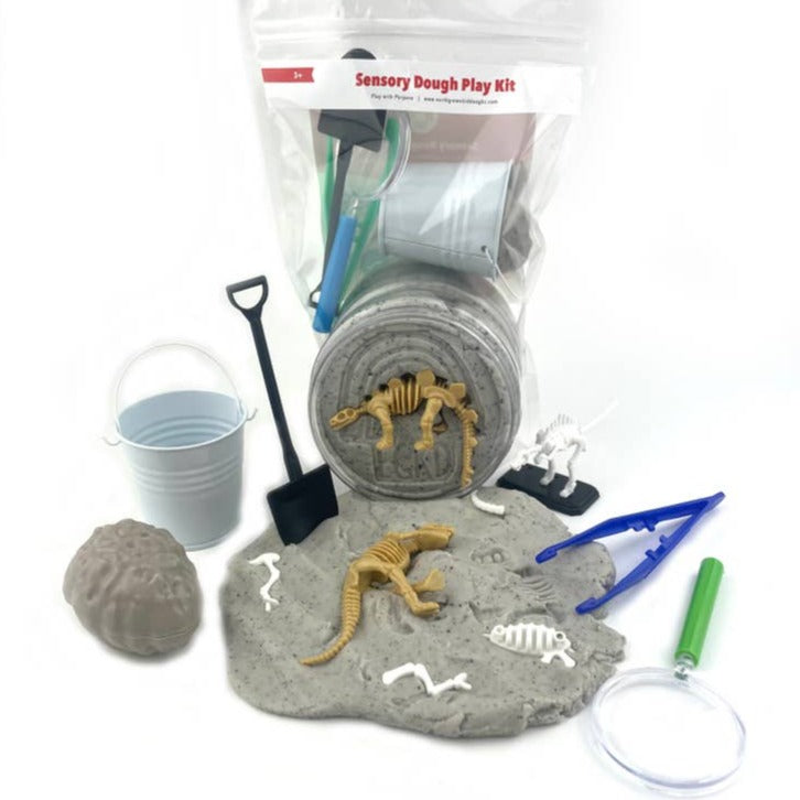 Unearth some prehistoric fun with the Earth Grown Dinosaur Fossil Play Dough Kit! All the pieces you need for a roarin' good time are included: clay, a roller, and a few accessories to make your fossils come to life. Saddle up, pal! It's time to time travel! (In a totally safe way, of course.)
