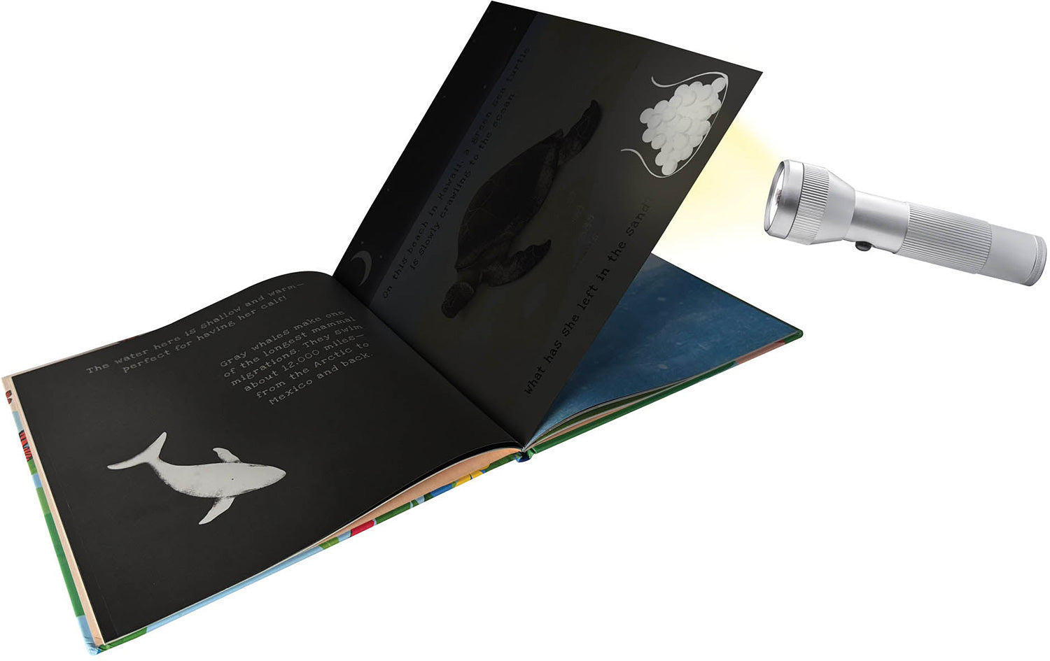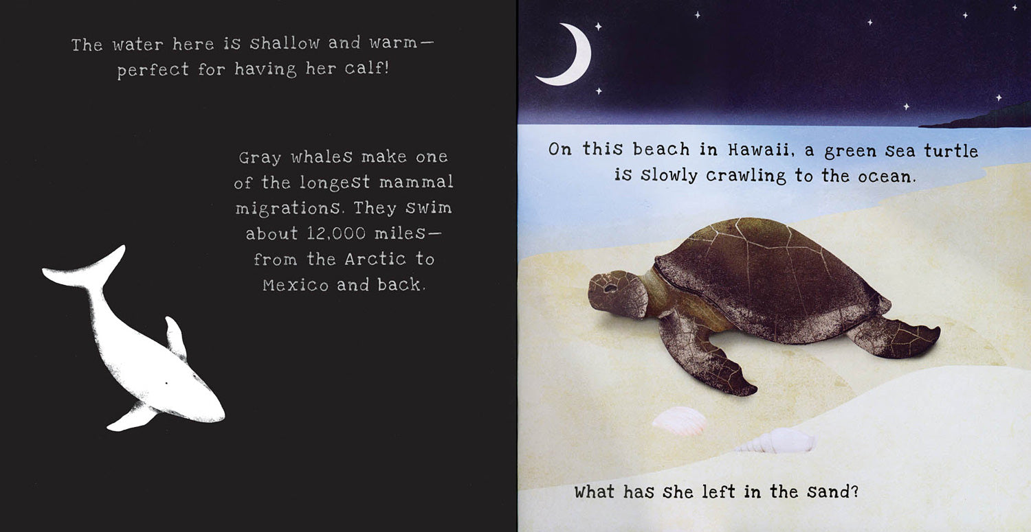 Explore the fascinating journeys of animals that migrate! Shine a flashlight through the pages of this book to reveal migratory animals hidden within: butterflies, whales, lobsters, and more. Curious kiddos ages 4-8 will enjoy the magical experience of illuminating each page and learning about where and when each type of animal migrates! This 36-page 10" x 10" hardcover book is a must-have for nature enthusiasts and kids who love surprises.