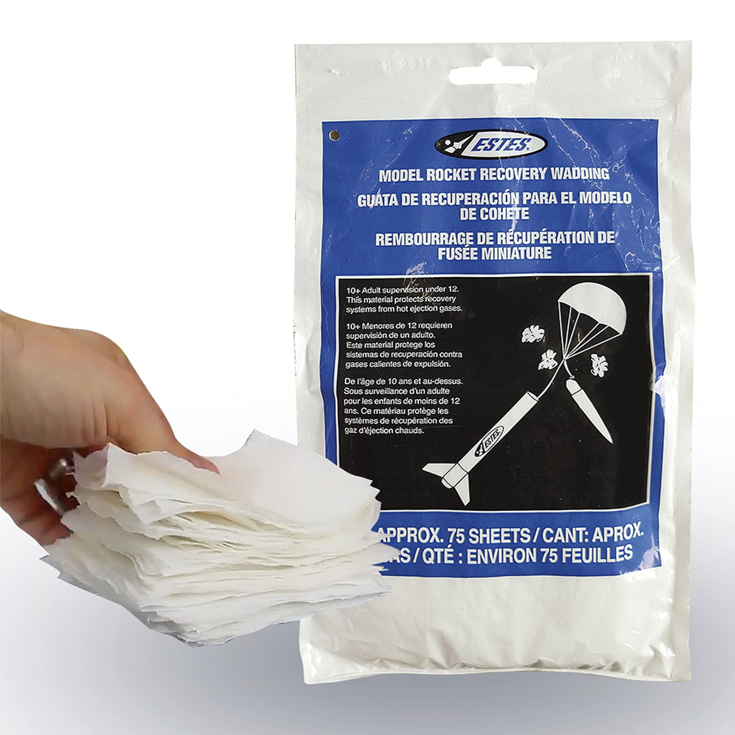 Flame resistant recovery wadding protects the recovery system and is necessary to launch model rockets.