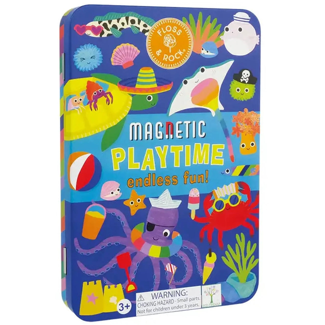 Playtime fun in a handy magnetic tin! Contains 3 sheets of pop out magnets so you can have fun sticking over 50 bright, fun magnetic pieces to the 2 fun scenes on the inside of your tin and let your imagination run wild creating. A perfect pick up gift, printed with soy inks and made using recycled materials. When you're finished playing, the magnetic tin safely stores all your pieces ready for next time.
