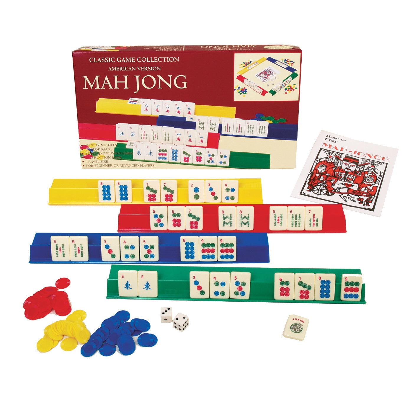 American version. Includes 166 tiles, 4 color racks, 2 dice, playing chips and instructions. For beginning and advanced players.