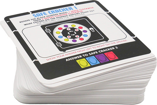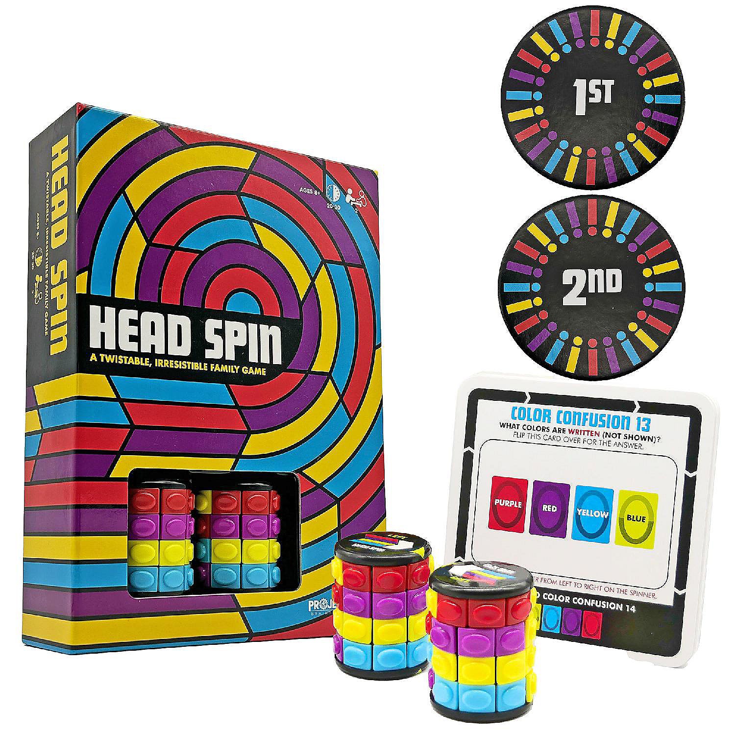 A face-paced race of a game. Flip over one of 100 puzzle cards to solve over 200 brain-teasing puzzles, turning and twisting your spinner to reveal the answer as quickly as you can over your landing pad. Each puzzle has a different degree of difficulty. Can your fidgety fingers figure out the color pattern before your friends do? For 2 players.