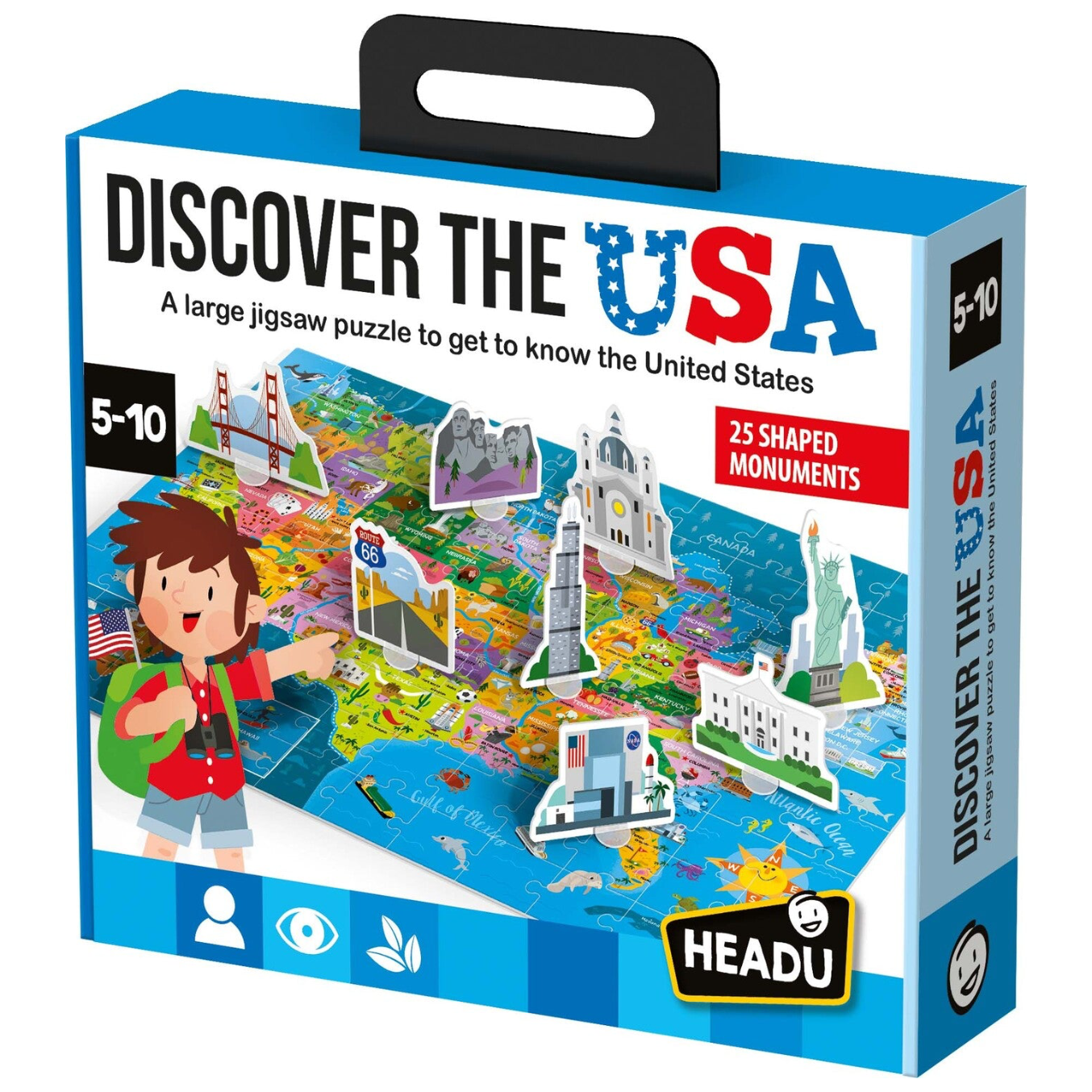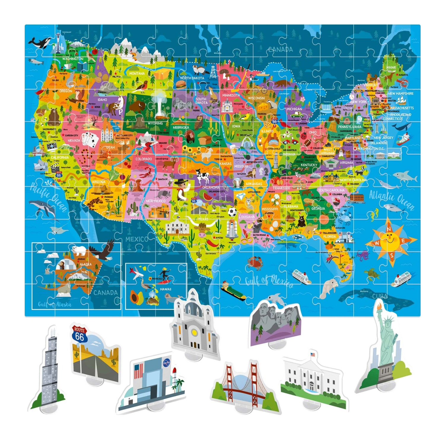 A large jigsaw puzzle which will take you on a fantastic adventure amongst the cities, natural beauties, the flora and fauna, and the culture of the United States of America. You can also position the 25 most important monuments in their correct geographical location.
