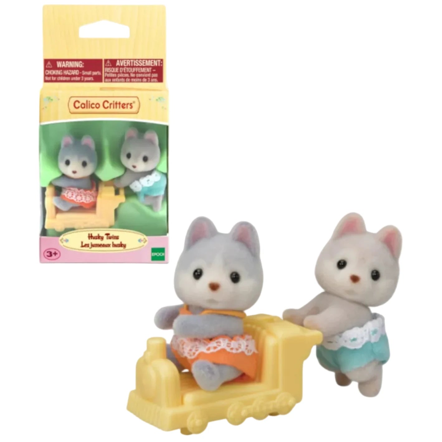 Imaginations soar in the pretend play world of Calico Critters. Get started or expand your collection with this family of five soft, flocked, poseable huskies in removable clothing. They are dressed for an outdoor sledding adventure! Set includes 2 adults, 3 babies, and one sled. Some accessories sold separately.