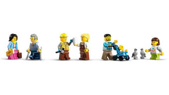 • What's in the box? – All kids need to build a toy train station and a maintenance railcar equipped with a raisable cherry picker, plus 6 minifigures, a baby figure and 2 pigeon figures for role play