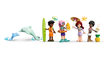 • Vehicle playset with accessories – This LEGO® travel playset comes with accessories for role play, including 2 water scooters, a surfboard, flippers, life vests, food and drinks, a floatie and more