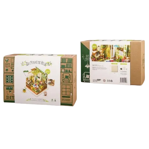 Robotime-Rolife Miller's Garden DG108 DIY green yard miniature house is full of plants and flowers. Building a white bench and curling to the beautiful garden is a wonderful pleasure in daily life. Realistic details like a window with curtain, wooden rails, frames, fences, flower beds, flower pot. It is relaxing to craft and assemble your dream house together.