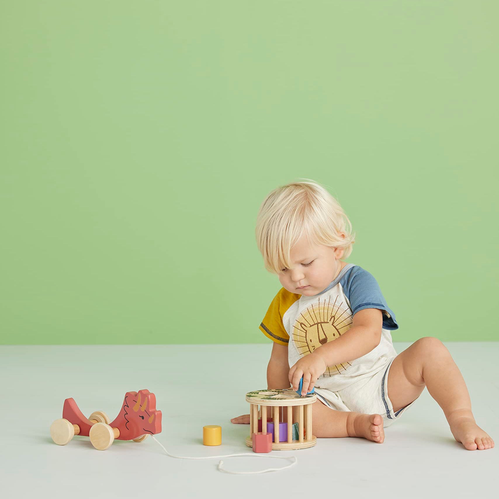 Get ready for some dino-mite fun with our Mud Pie Dino Shape Sorter Set! This unique orange set includes a variety of shapes for your little one to sort and stack, promoting fine motor skills and hand-eye coordination. Perfect for some prehistoric playtime!