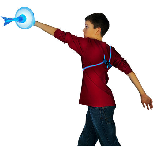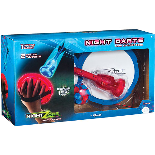 Grab a paddle, adjust the straps, then send the dart through the air towards your friend. Paddles and dart all light up, so you can't miss in the dark! Each set includes two paddles, a rocket dart, and a sucker ball. Includes 3 AAA and 3 cell batteries. For ages 6 yrs-teen, from Toysmith.