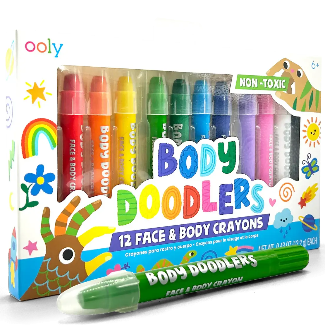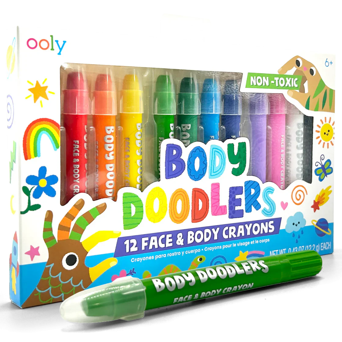Discover endless possibilities with Ooly Body Doodlers Face & Body Crayons. These fun and non-toxic body crayons allow for easy creativity and safe play. Washable formula ensures hassle-free clean up, making it perfect for kids and adults alike. Unleash your inner artist without any worries!