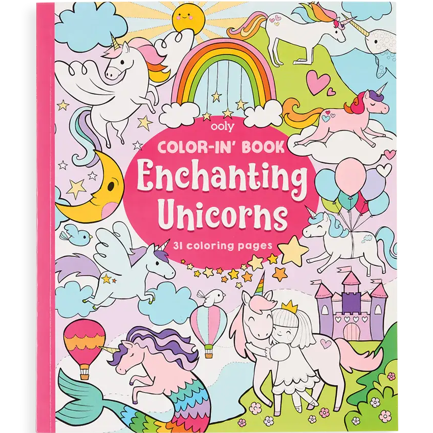 Unleash your inner artist with the Ooly Color-in' Book: Enchanting Unicorns! This 8" x 10" book features beautiful art of magical unicorns and allows you to bring the pages to life with your own coloring. Perfect for creative fun and relaxation.