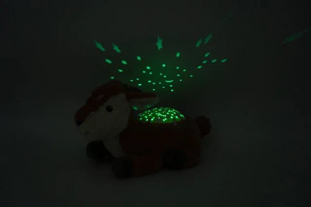 Twilight Buddies™ - Fawn is a plush and soft friend that help ease children’s fear of the dark by projecting a starry night sky onto bedroom ceilings and walls. Hidden within the soothing starry projection are the moon and 3 constellations!