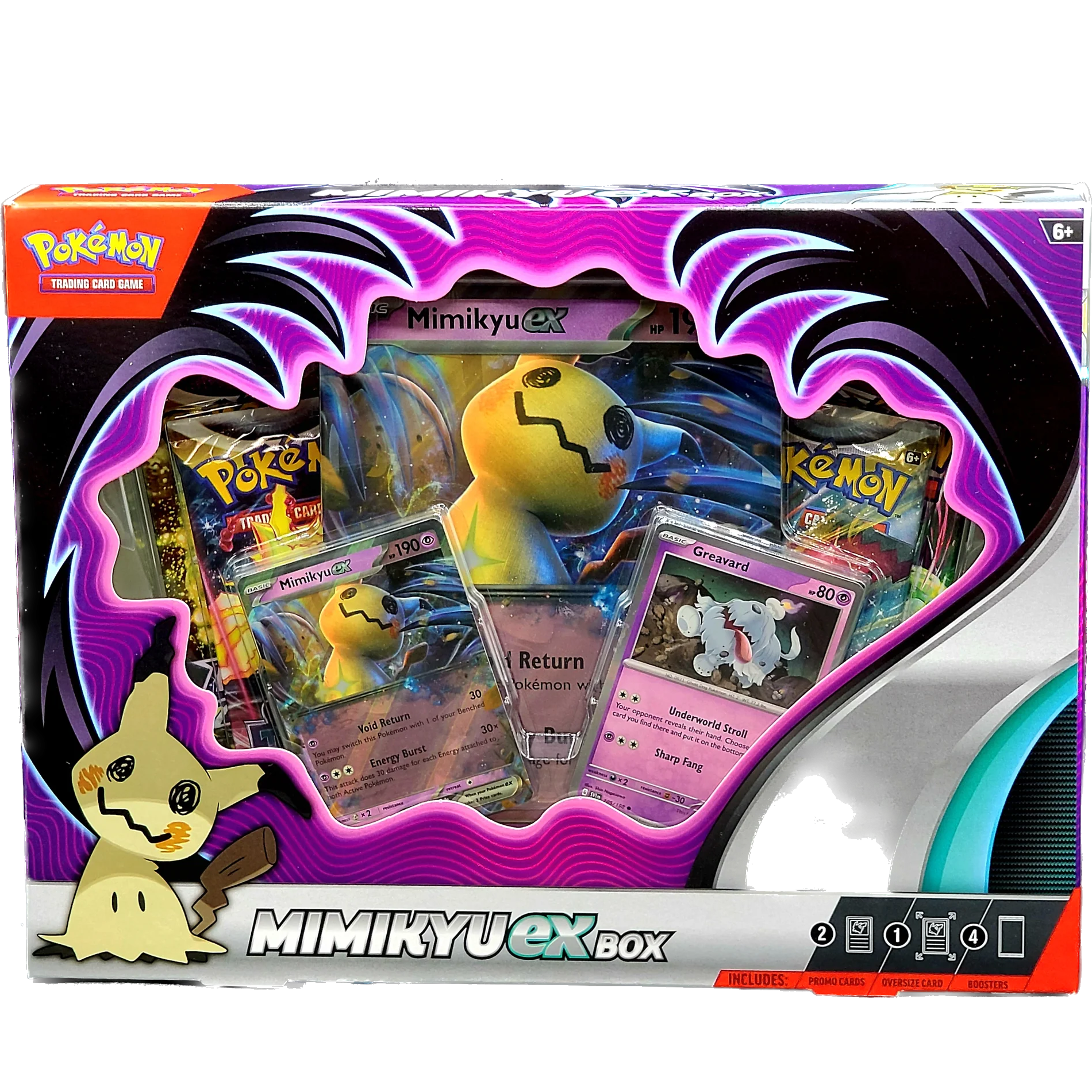 Mysterious powers and supernatural strategies swirl as the adorably spooky Mimikyu makes its debut as a Pokémon ex! Use Energy Burst to hit for huge damage, and then join the Ghost Dog Pokémon Greavard on an Underworld Stroll to mess with your opponent's hand. You'll find Mimikyu ex as a foil promo card in playable and oversize versions, along with a foil Greavard to add to your deck!
