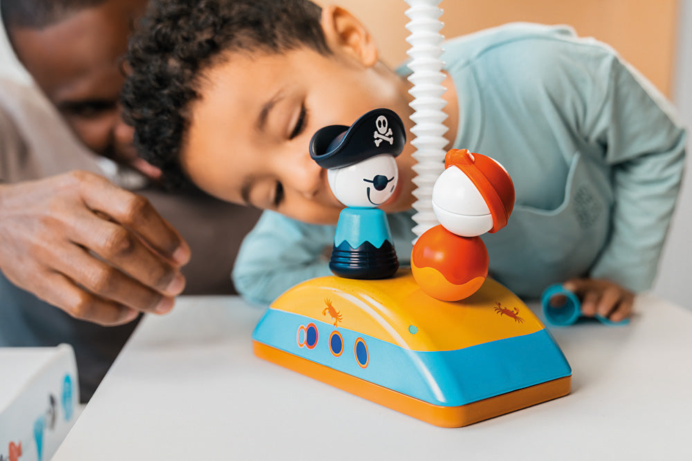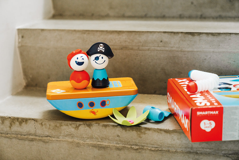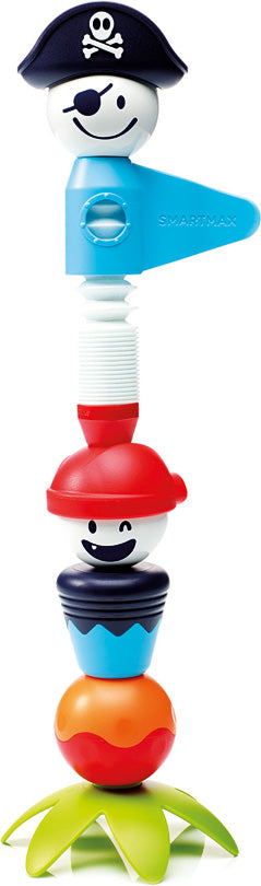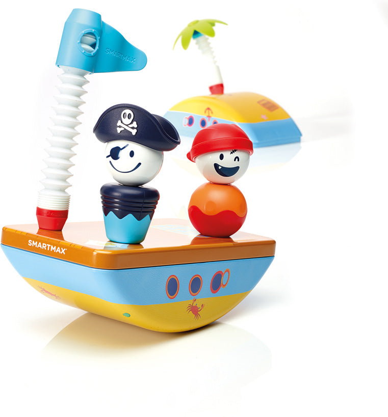 Set sail on the high seas in search of treasure: the magic of magnetic play! Autumn is the season to embark on imaginary adventures in storytelling, and this pirate set is a great start. The wobbly ship is a metal playbox that doubles as a play area (an ocean scene is hiding inside!) and storage. The 10 pieces include two pirates, a ship's mast and flag, and palm tree topper. There's also an illustrated story leaflet to spark storytelling!
