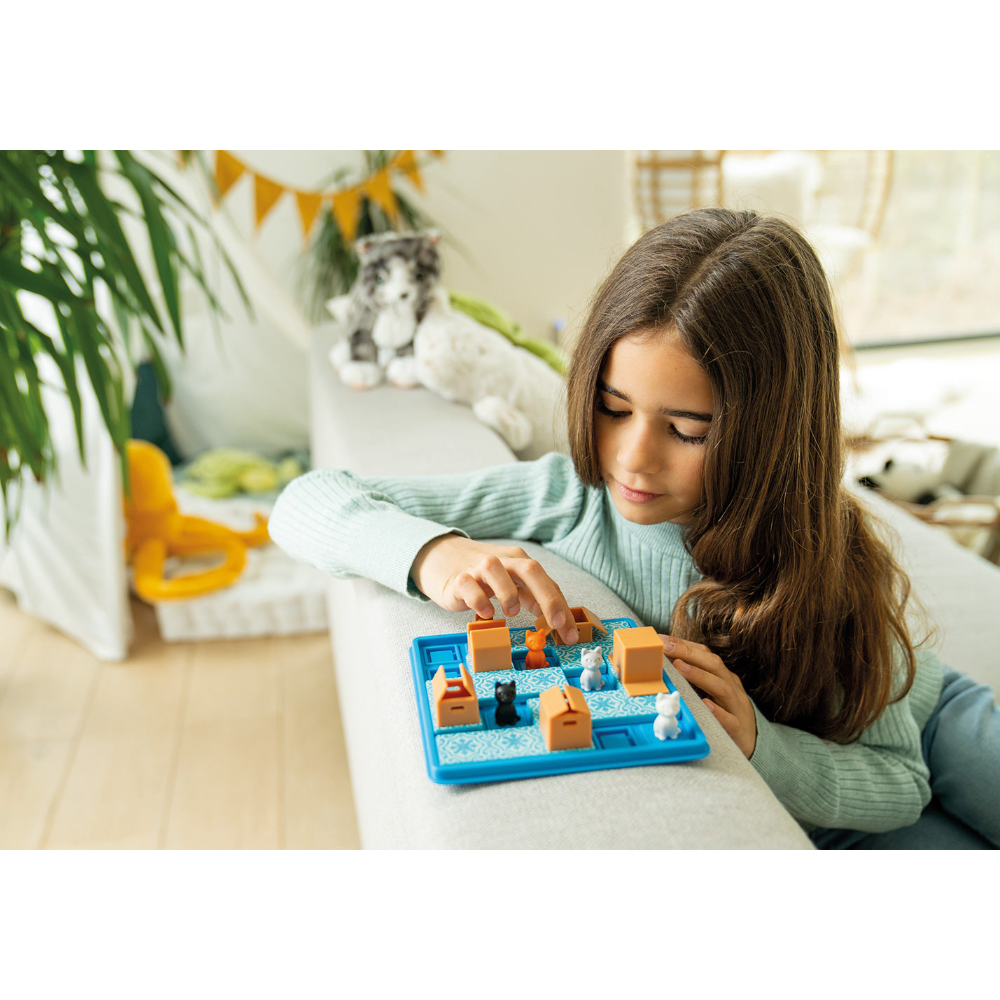 The purrrrfect solo game for cat lovers is here! With a little smart thinking, clever tweens, teens, and adults can move the puzzle pieces one by one until all cats are in a cardboard box. It's a sequential puzzle game that comes in a compact format, ideal for travel or whenever boredom strikes. Includes 1 game board with lid, 5 cats, 4 puzzle pieces, challenge booklet with 60 challenges and solutions. For 1 player.