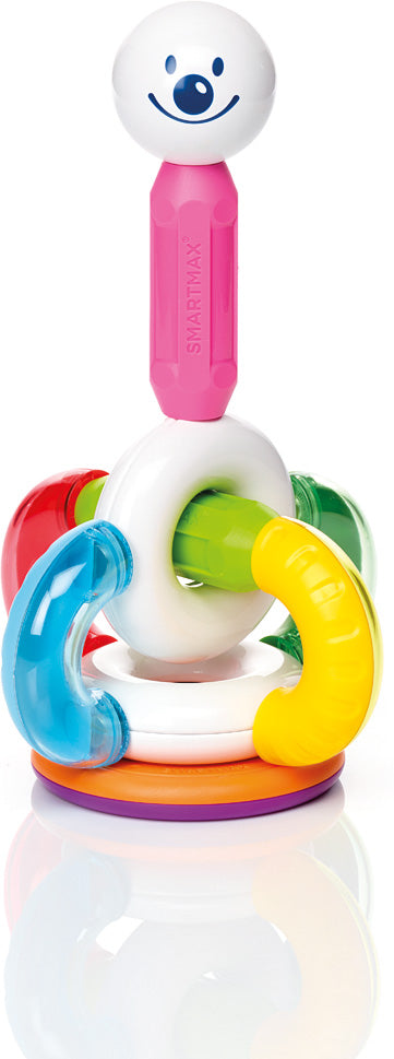 Toddlers experience stacking and balancing like never before with this safe introduction to magnetic discovery! They'll giggle with glee as chunky magnetic rings split in half and connect in quirky ways, bringing funny figures to life. The dual-sided base introduces a delightful wobble, adding an extra layer of excitement and challenge to your child's creations. Stimulates hand-eye coordination, balance, and fine motor skills. Compatible with all other SMARTMAX.