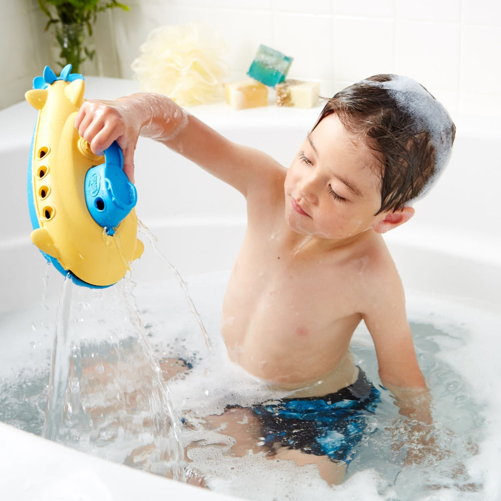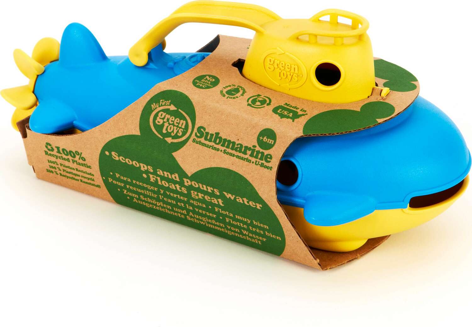 Take the helm of the My First Green Toys Submarine for a nautical journey to help protect the planet! Submerge it underwater to explore the terrain at the bottom of the tub, and let it resurface to scan the horizon in search of the next earth-friendly adventure. Made in the USA from 100 recycled plastic milk jugs that save energy and reduce greenhouse gas emissions, this sturdy watercraft features a spinning rear propeller, a flat bottom for added stability, and the classic handle and wide-mouth opening combination for plenty of scoop-and-pour fun. The cabin can be opened for easy cleaning, while the whole vessel is also dishwasher safe.