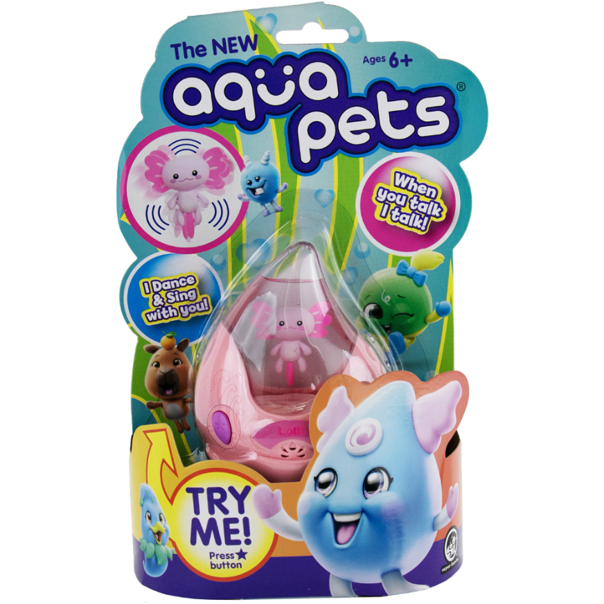 Does your kiddo keep asking for a pet? Get them started with Aqua Pets! These adorable, collectible characters swim, float, and truly come to life! Each pet responds to voices, taps, and even other Aqua Pets with playful lights, sounds, and personality-packed movements. Just tap, press, and play to see each floating critter's unique swimming style, sounds, and personality quirks. With three built-in mini games: Memory, Catch Me Speed, and Dance Party, kids will enjoy hours of interactive play. Perfect for birthdays, holidays, or as a collectible surprise. Collect them all! Each fun style sold separately. Styles and selection may vary. Comes ready to play with 2 AAA batteries included!