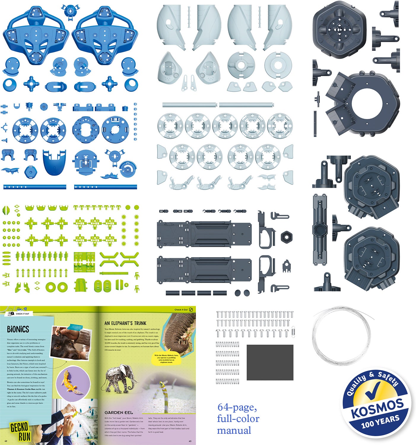 Future engineers feel what it's like to build and control a state-of-the-art remote operating robot! They'll enjoy the focused work of building this 297-piece bionic robotic arm while learning about mechanical assembly. Once built, kids control the robotic arm using intuitive joysticks that pull on nylon cables, enabling precise 360 degree motion and flexible grabbing. Change the claw for the eel head for extra fun! Recommended for ages 10 and up with help, or 14 and up for independent play.