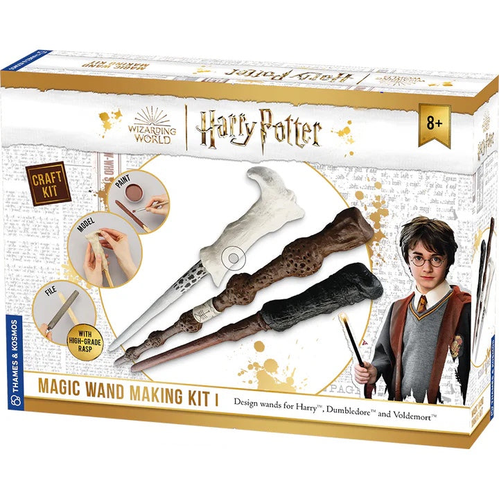 With this craft kit, Harry Potter™ fans can create magical-looking replicas of the wands of Harry Potter™, Voldemort™ and Dumbledore™. With a child-friendly wooden rasp, modeling clay and paint, the wooden blanks are transformed stepby-step into the familiar wands.