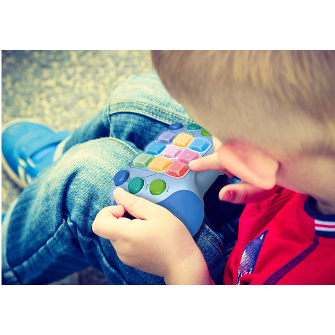 Embrace 80's nostalgia with this handheld version of a blast from the past: Whack Attack! Kids (and adults!) release extra energy and build focus as they follow the flashing lights in 5 different 1-player games. Choose from hamster, memory, chase, light, and music modes. Volume and lights are adjustable and players can even pause the game! Great after school, travel, or pre-dinner entertainment. Requires 3 AAA batteries, not included.