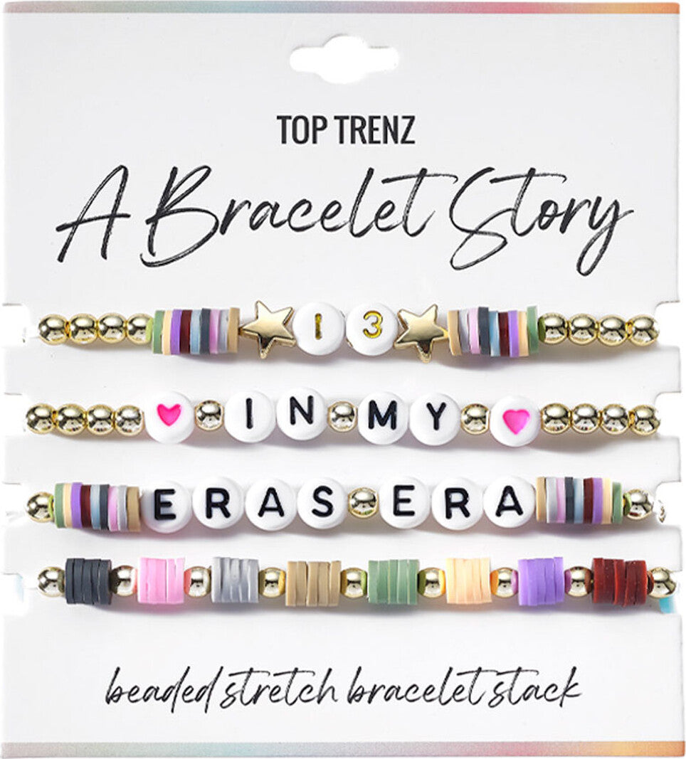 Celebrate every era with the In My Eras Era Bracelet Story Set! Inspired by the journey through all the iconic styles and vibes, this 4-piece set is perfect for fans who embrace every chapter. Each bracelet highlights a unique “era,” capturing the colors and energy of the different phases that make up the story. From bold to delicate, this set brings together all the feels, letting you carry the spirit of each era wherever you go.
