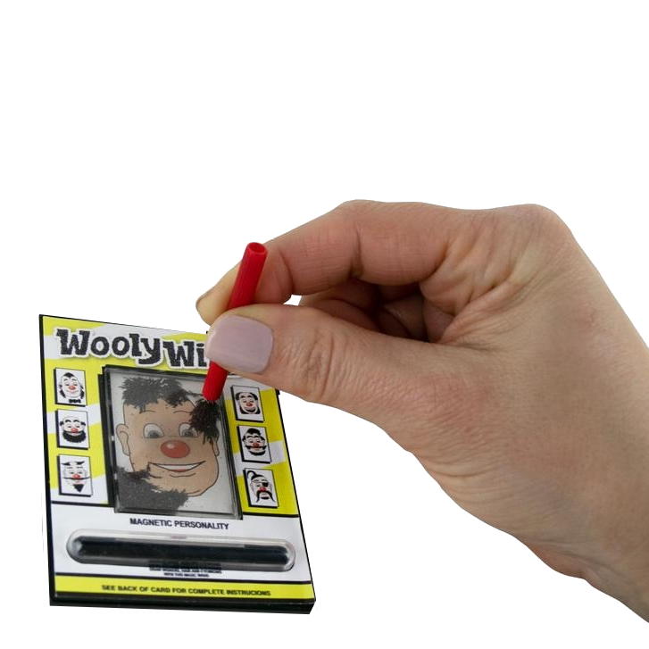 Kids who love to collect mini toys will get silly with a mini Wooly Willy! The classic magnetic hair-drawing pad is now available in the smallest size ever. A great stocking stuffer for kids and nostalgic adults, this tiny 3" activity features a teeny magnetic wand and enclosed magnetic pieces to move on top of Willy's silly face.